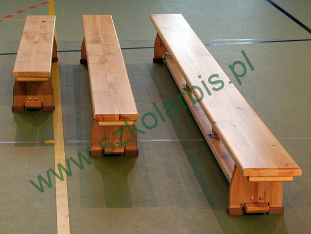 Wykonana z drewna iglastego, nogi drewniane, posiada stopki z gumy niebrudzącej podłoże. Kształtowniki łączące elementy ławki usztywniają jej konstrukcję zapewniając stabilność oraz bezpieczeństwo eksploatacji. Wszystkie krawędzie płyty, belki oraz nóg są zaokrąglone. Ławka posiada zaczep umożliwiający zawieszenie na drabinkę lub skrzynię gimnastyczną.