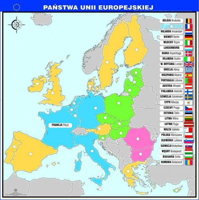 2. Mapa Europy z wyszczególnionymi flagami państw.