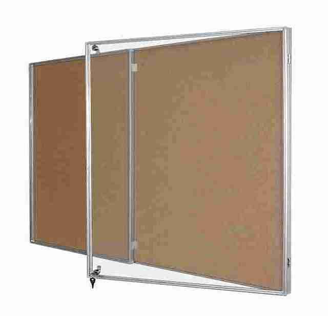 Gabloty do ogłoszeń. Gablota ogłoszeniowa dwudrzwiowa GMD wykonana z bezpiecznego szkła akrylowego. Rama gabloty aluminiowa anodowana w kolorze srebrnym, narożniki plastikowe. Dwoje uchylnych drzwi zamykanych na dwa zamki.