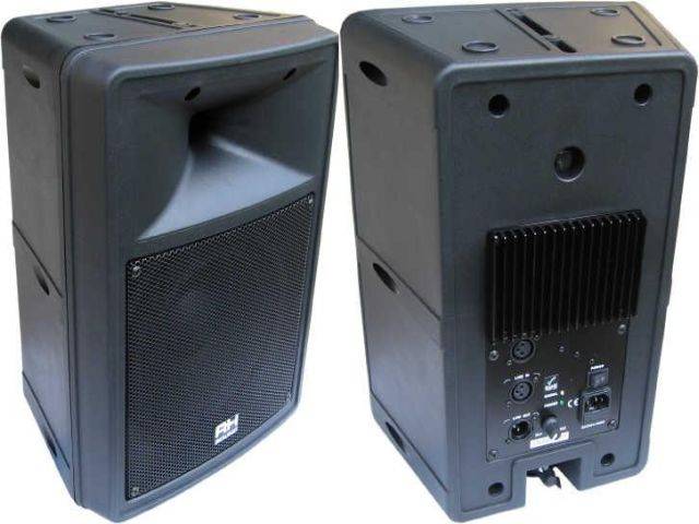 - Głośnik niskotonowy 12\" na sztywnym zawieszeniu oraz głośnik wysokotonowy dynamiczny z membraną o średnicy 1\"