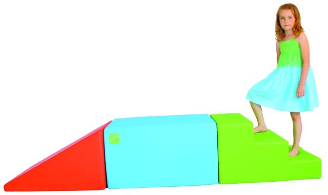 Zestawy klocków z pianki poliuretanowej i eco-skóry, pozwalające ćwiczyć koordynację i rozwijać sprawność ruchową dzieci.