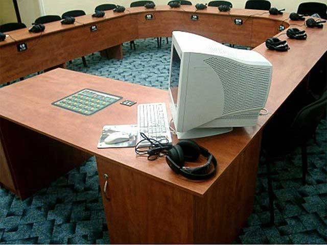 Wzmacniacz z głośnikami – bardzo ciekawe i przydatne. Głośniki standardowe wbudowane w biurko nauczyciela, wzmacniacz jest zintegrowany z jednostką centralną. Rozwiązanie umożliwia, niezależne od przekazu przez słuchawki, nagłośnienie sali.
