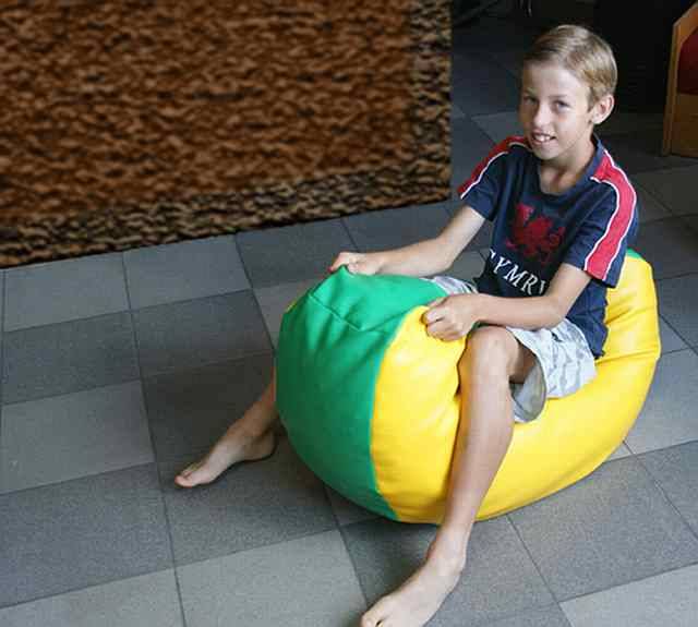 Miękka i wygodna poducha w kształcie banana wypełniona granulatem dopasowująca się kształtem do osoby siedzącej.