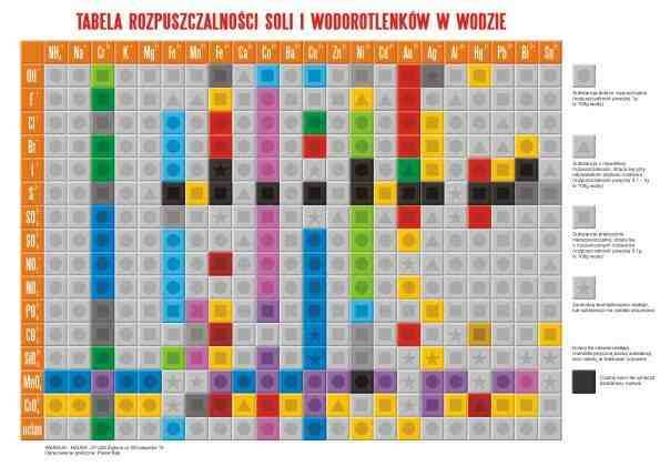 Tabela rozpuszczalności soli i wodorotlenków w wodzie 85x120